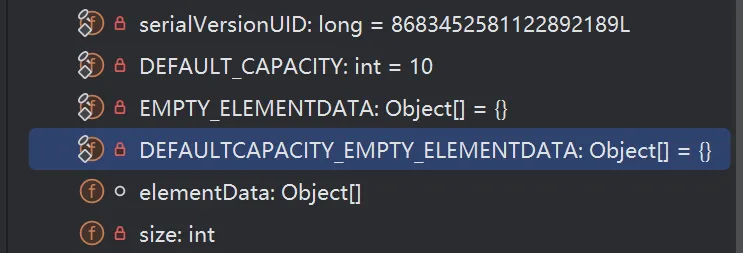 从源码上看主要是这几个常量,包括容量,数组,实际大小usedSize…