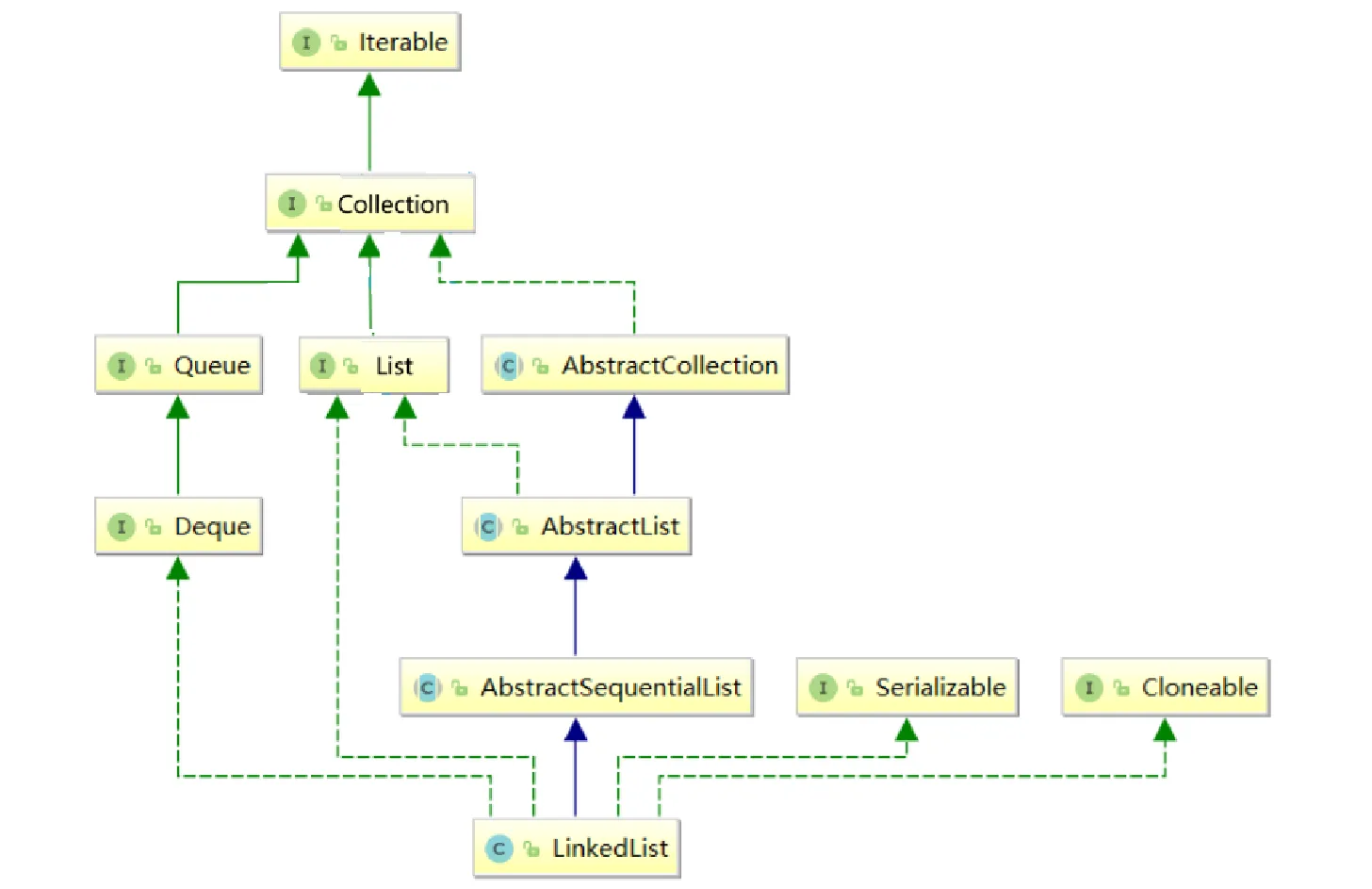 通过以下集合框架可以发现,LinkedList 也同样实现了 List 接口: